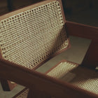 The wood and rattan of our Chandigarh chair